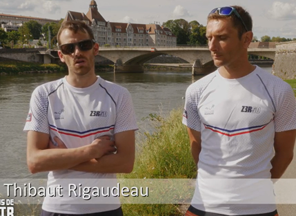 Thibaut Rigaudeau, parrain de la fondation et parathriathlète, et son guide Cyril Viennot, triathlète, font partie de ce projet ainsi que :